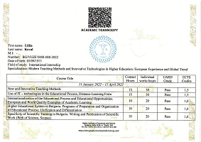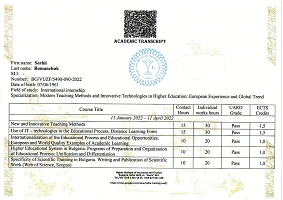 За підсумками стажування учасники отримали сертифікати про підвищення кваліфікації в обсязі 180 годин (6 кредитів ECTS). Важливо, що отримані сертифікати визнаються в Україні без нострифікації відповідно до ст. 12 Угоди між Кабінетом Міністрів України та Урядом Республіки Болгарія про взаємне визнання документів про освіту, наукові ступені і вчені звання (затверджено Постановою Кабінетом Міністрів України №819 від 13.06.2002).