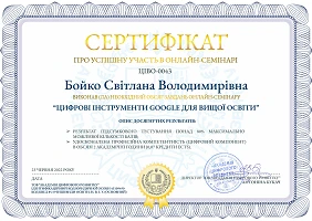 Після завершення заходу учасники, що виконали необхідний обсяг завдань отримали сертифікати про успішну участь у онлайн-семінарі в обсязі 2 академічні години (0,07 кредити ECTS).