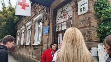 В офісі Кіровоградської обласної організації товариства Червоного Хреста України (ТЧХУ) по вул. Гоголя 98 керівник міської організації, інструктор з першої допомоги Світлана Бондарчук розповіла про особливості і структуру ГО, специфіку та напрямки роботи найстарішого в місті товариства.