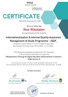 21–22 грудня 2022 року доцент кафедри економічної теорії, маркетингу та економічної кібернетики ЦНТУ Ігор Ніколаєв прийняв участь у тренінгу “Internationalization & Internal Quality Assurance Management of Study Programme – IQSP” (Інтернаціоналізація та управління внутрішньою якістю навчальної програми). Тренінг розроблений та проведений в рамках програми підвищення кваліфікації “Multiplication Trainings for Higher Education Administrators in Ukraine” (Мультиплікаційні тренінги для адміністраторів вищої освіти в Україні) – THEA Ukraine X тандемом тренерів у складі Алли Красулі (Сумський державний університет) та Наталії Шалімової (Центральноукраїнський національний технічний університет).